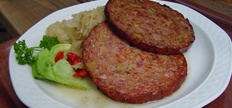 Frisches Bauernbrot, Sahnepüree oder Pfälzer Kartoffeln, Weinkraut und Pfälzer Wein.